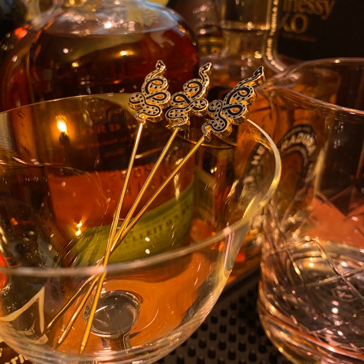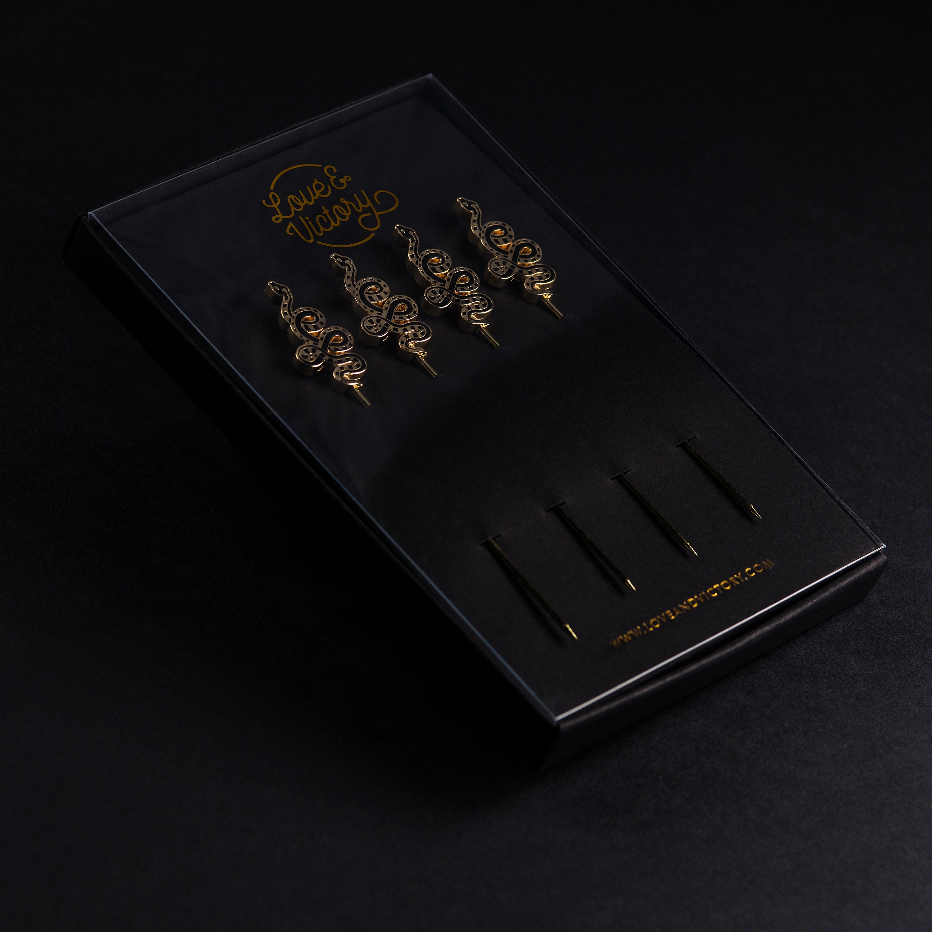 Set of 4 cocktail picks packaged in a custom gift box.