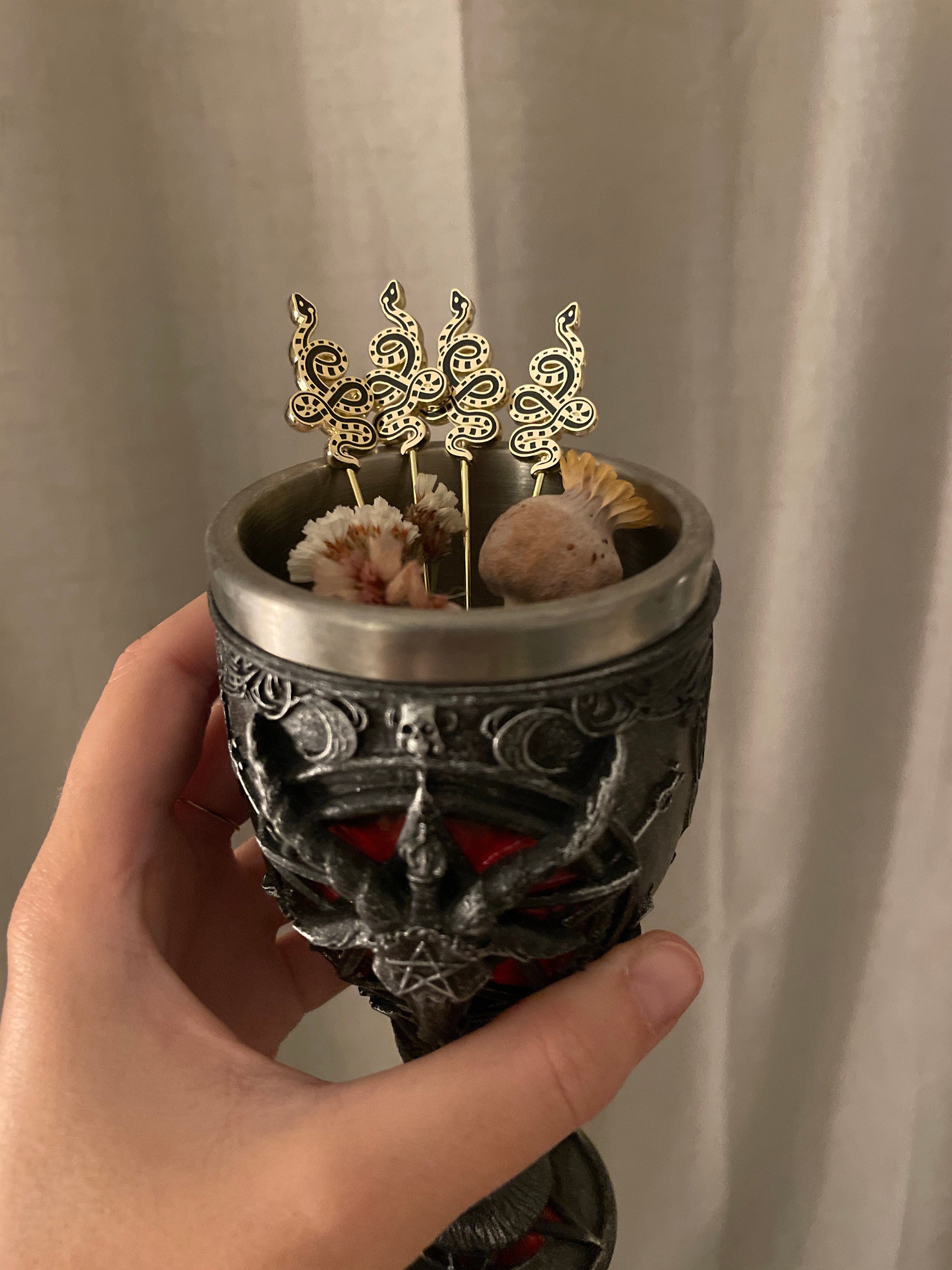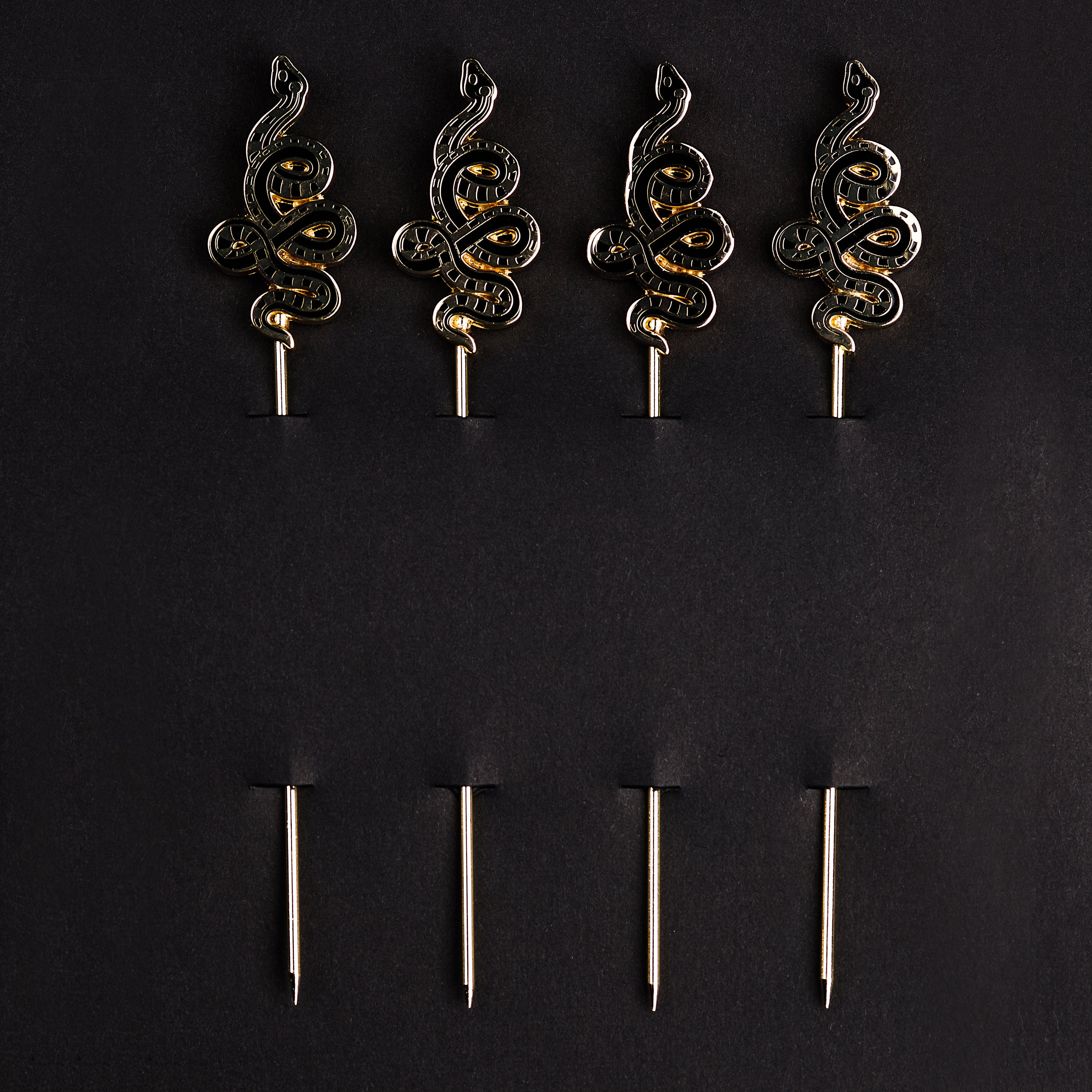Gold tone + black enamel. Packaged in our custom gold-printed box.